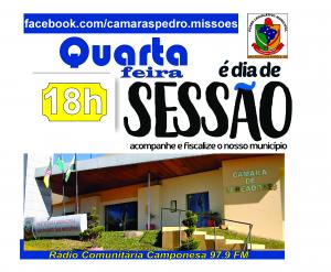 A sessão é transmitida ao vivo pelo canal do facebook: Câmara S Pedro Missões. A rádio Camponesa FM 97,9 também transmite a sessão, com reprise na manhã de terça-feira. Mais informações acesse o site: https://saopedrodasmissoes.rs.leg.br/
