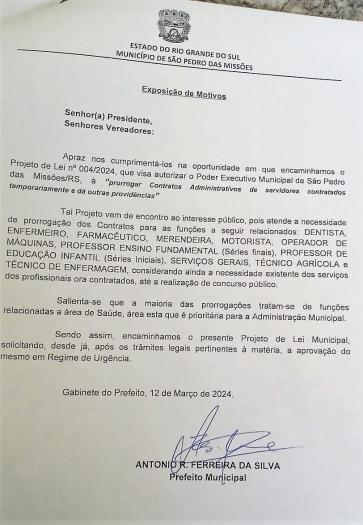 No dia 25 de março (18h), foi realizada a 4ª Sessão Ordinária do Legislativo de São Pedro das Missões.