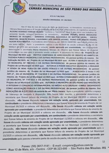 Na segunda-feira, dia 31 de março, aconteceu a 5ª Sessão Ordinária da Câmara de São Pedro das Missões. Como não havia material protocolado e houve um entendimento entre os vereadores, a sessão foi realizada de forma não presencial. A próxima sessão ordinária está marcada para o dia 14 de abril, às 18h.