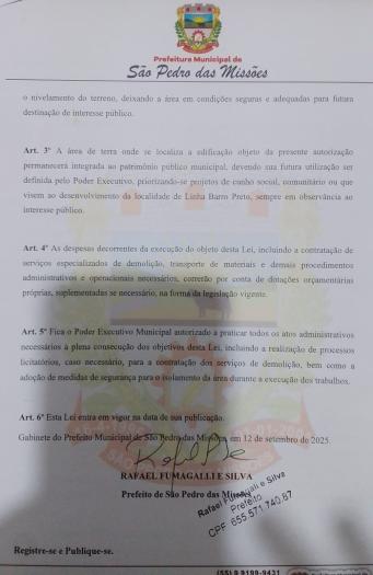PROJETO DE LEI MUNICIPAL Nº 030/2025: Autoriza o Executivo a proceder a demolição de imóvel de propriedade o município, localizado na linha Barro Preto. Aprovado.