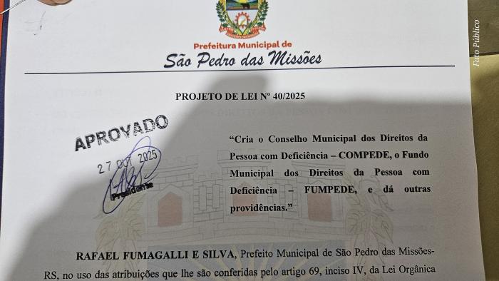 PROJETO DE LEI MUNICIPAL Nº 041/2025: Cria o Conselho Municipal dos Direitos da Pessoa com Deficiência. Aprovado.