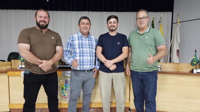 Em seguida, aconteceu a eleição para escolher a nova mesa diretiva da Câmara Municipal para o mandato de 2026. A única chapa que participou foi eleita por unanimidade, e ela ficou assim formada: presidente Aldoir da Rosa Brizola (PT), vice-presidente Alcione Rodrigo Ferrari Vezaro (PDT); 1º secretário Geremias Ochoa Zandoná (PP) e o 2º secretário Valdomiro dos Santos Vezaro (PP).