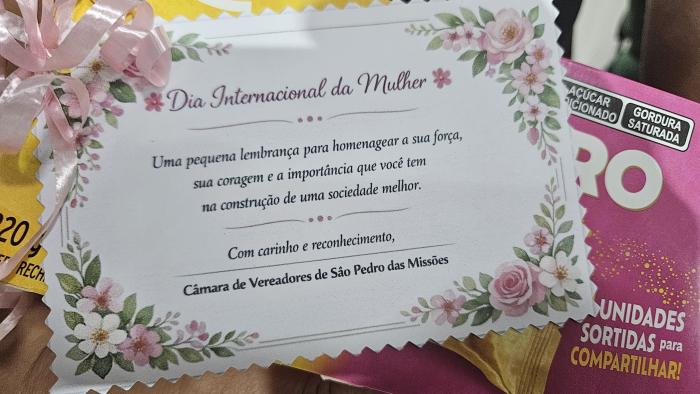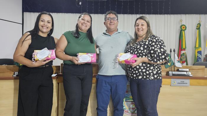 Também na sessão, o presidente Aldinho Brizola prestou uma homenagem às vereadoras e funcionárias da Casa, pela passagem do Dia Internacional da Mulher. Cada uma recebeu uma lembrança em reconhecimento ao seu trabalho e dedicação.