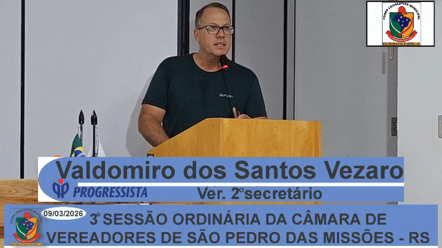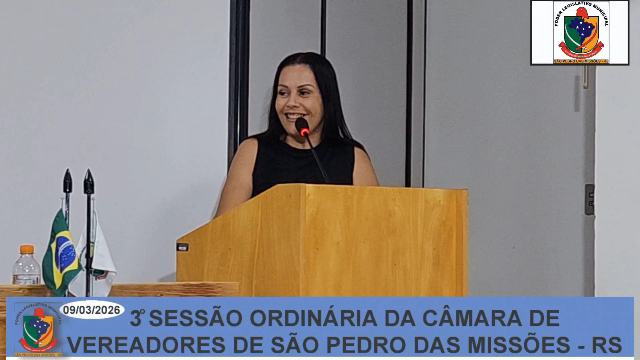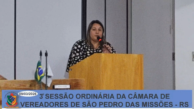 No dia 09 de março, foi realizada a 3ª Sessão Ordinária da Câmara de São Pedro das Missões. O presidente da Casa, vereador Aldoir Brizola, coordenou a condução dos trabalhos e designou à vereadora Maria Moraes para a leitura de um trecho da Bíblia Sagrada. Em seguida, foi aprovada a ata nº 04, referente a segunda ordinária realizada em 23 de fevereiro.